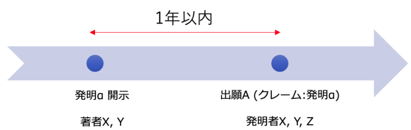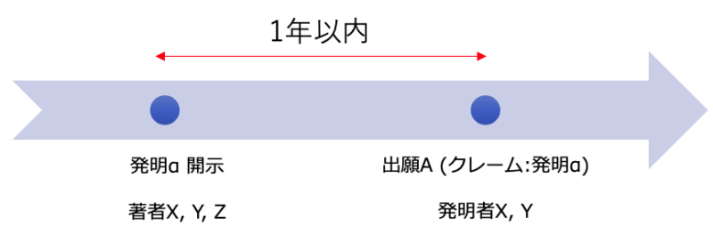 - クレーム発明の有効出願日よりも1年前以内に開示が行われていること